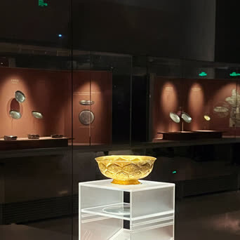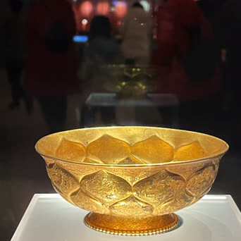 【李白诵《将进酒》端的金碗是文物同款】在总台龙年春晚西安分会场,《长安三万里》与节目《山河诗长安》梦幻联动。李白诵《将进酒》时和友人碰杯的酒碗,与唐代鸳鸯莲瓣纹金碗几乎一模一样。这只碗整体造型像盛开的莲花,外壁捶作出双层莲花瓣,鸳鸯、鹿、兔子、大雁等动物纹饰活灵活现……这些纹饰都是纯手工一点点捶打出来的,工艺难能可贵,精致程度令人赞叹